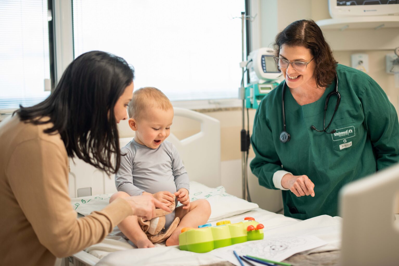 Tanto na internação quanto na UTI, o atendimento é realizado por uma equipe multiprofissional especializada em pediatria, composta por profissionais preparados para oferecer não apenas o tratamento adequado, mas também o apoio emocional e bem-estar a toda família.