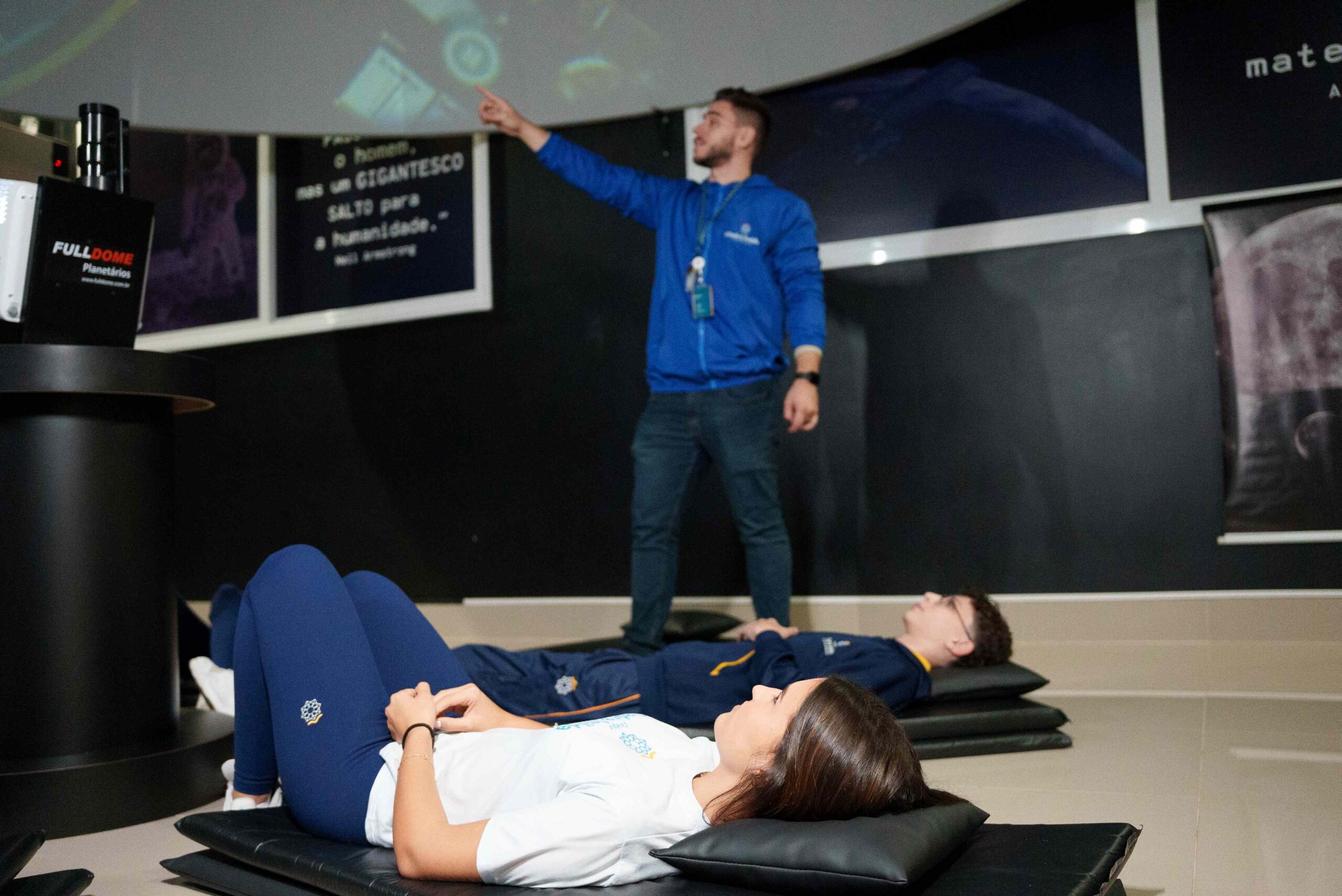 1.Sessões imersivas no Planetário do próprio do colégio, conduzidas por estudantes-monitores;